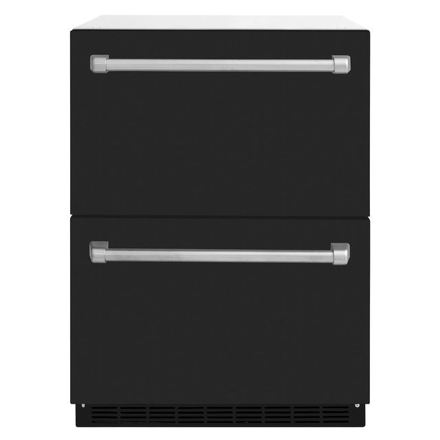 ZLINE 24 in. Touchstone 168 Can Outdoor-Rated Dual Refrigerator Drawer with Black Matte Doors (RDSO-BLM-24)