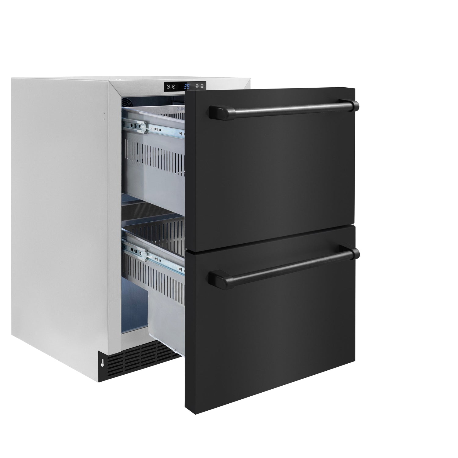 ZLINE 24 in. Touchstone 168 Can Outdoor-Rated Dual Refrigerator Drawer with Black Stainless Steel Doors (RDSO-BS-24)