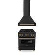 ZLINE 30" Autograph Edition Kitchen Package with Black Stainless Steel Dual Fuel Range and Range Hood with Champagne Bronze Accents (2AKP-RABRH30-CB)