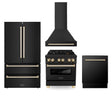 Shop Attainable Luxury with the ZLINE Kitchen and Bath Kitchen Appliance Package - featuring ZLINE Autograph Edition 30" 6.0 cu. ft. Dual Fuel Range with Gas Stove and Electric Oven in Black Stainless Steel with Gold Accents (RABZ-30-G), 30" Black Stainless Steel Range Hood with Gold Accent Handle (BS655Z-30-G), 24" 3rd Rack Top Control Tall Tub Dishwasher in Black Stainless Steel with Gold Accent Handle, 51dBa (DWVZ-BS-24-G) and 36" 22.5 cu. ft Freestanding French Door Refrigerator with Ice Maker in Fingerprint Resistant Black Stainless Steel with Accents (RFMZ-36-BS-G). Save more on your dream kitchen when you bundle. Free shipping on all orders.