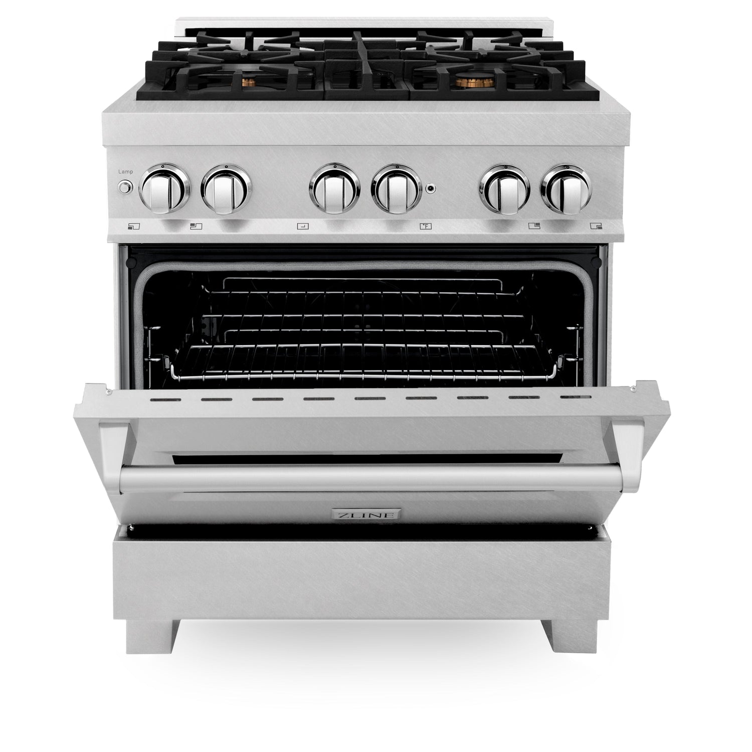 ZLINE 30 in. 4.0 cu. ft. Legacy Dual Fuel Range with Gas Cooktop and Electric Convection Oven in Satin Stainless Steel with 4 Brass Burners (RAS-SN-BR-30)