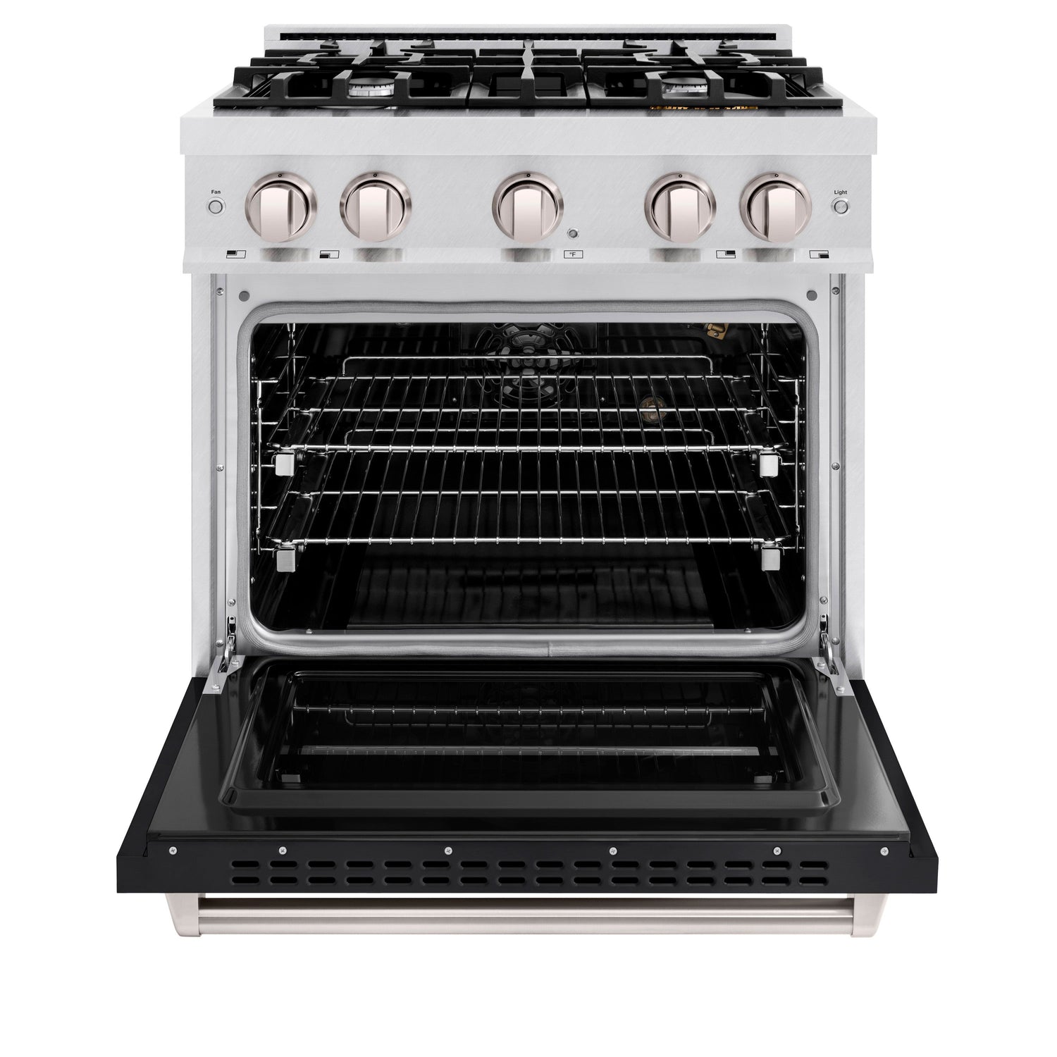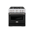 ZLINE 30 in. 4.2 cu. ft. Classic Gas Range with 4 Burner Cooktop and Convection Gas Oven in Satin Stainless Steel with Black Matte Door (CGRS-BLM-30)