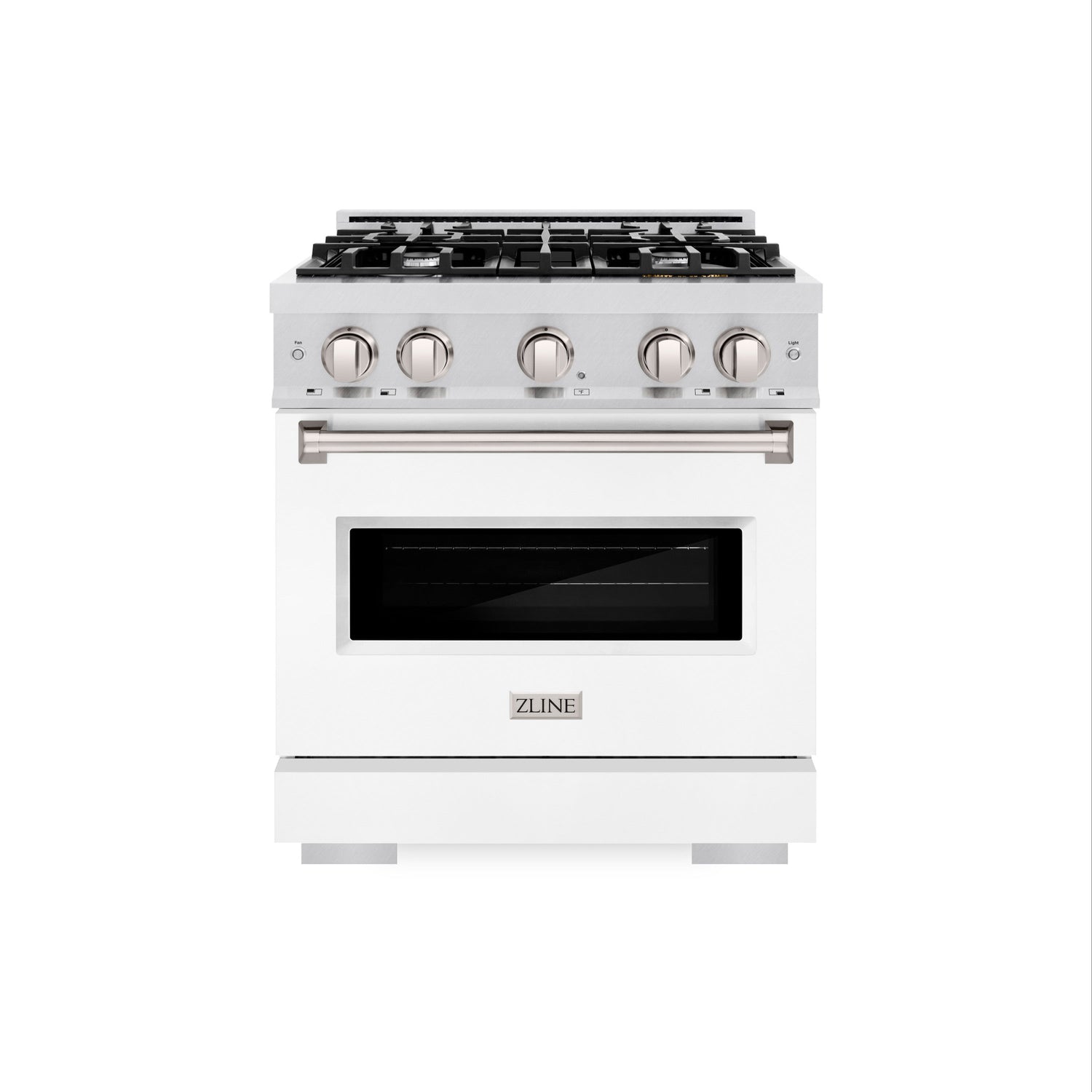 ZLINE 30 in. 4.2 cu. ft. Classic Gas Range with 4 Burner Cooktop and Convection Gas Oven in Satin Stainless Steel with White Matte Door (CGRS-WM-30)