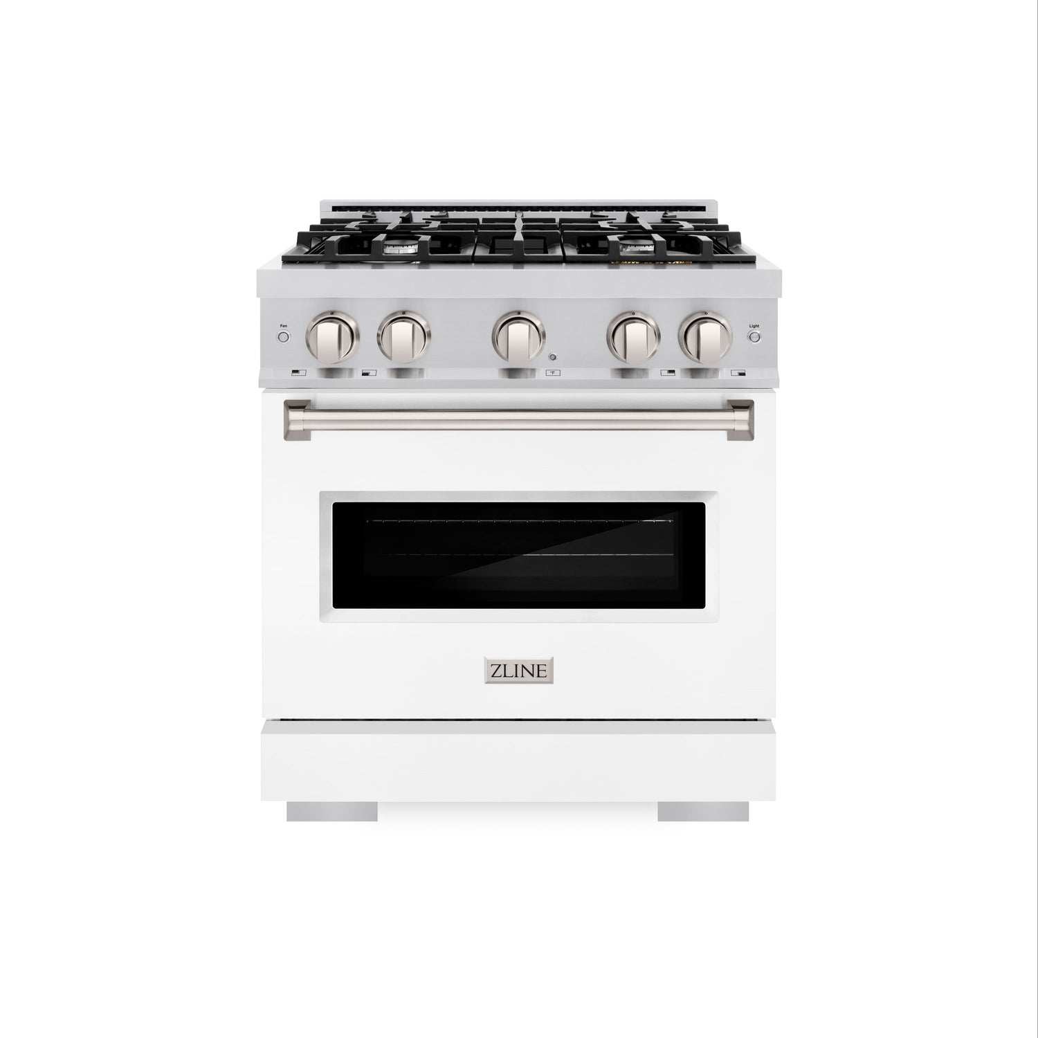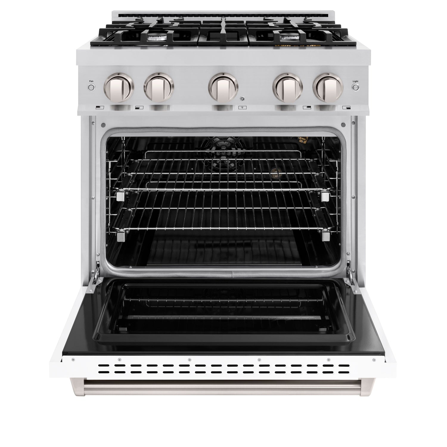 ZLINE 30 in. 4.2 cu. ft. Classic Gas Range with 4 Burner Cooktop and Convection Gas Oven in Stainless Steel with White Matte Door (CGR-WM-30)