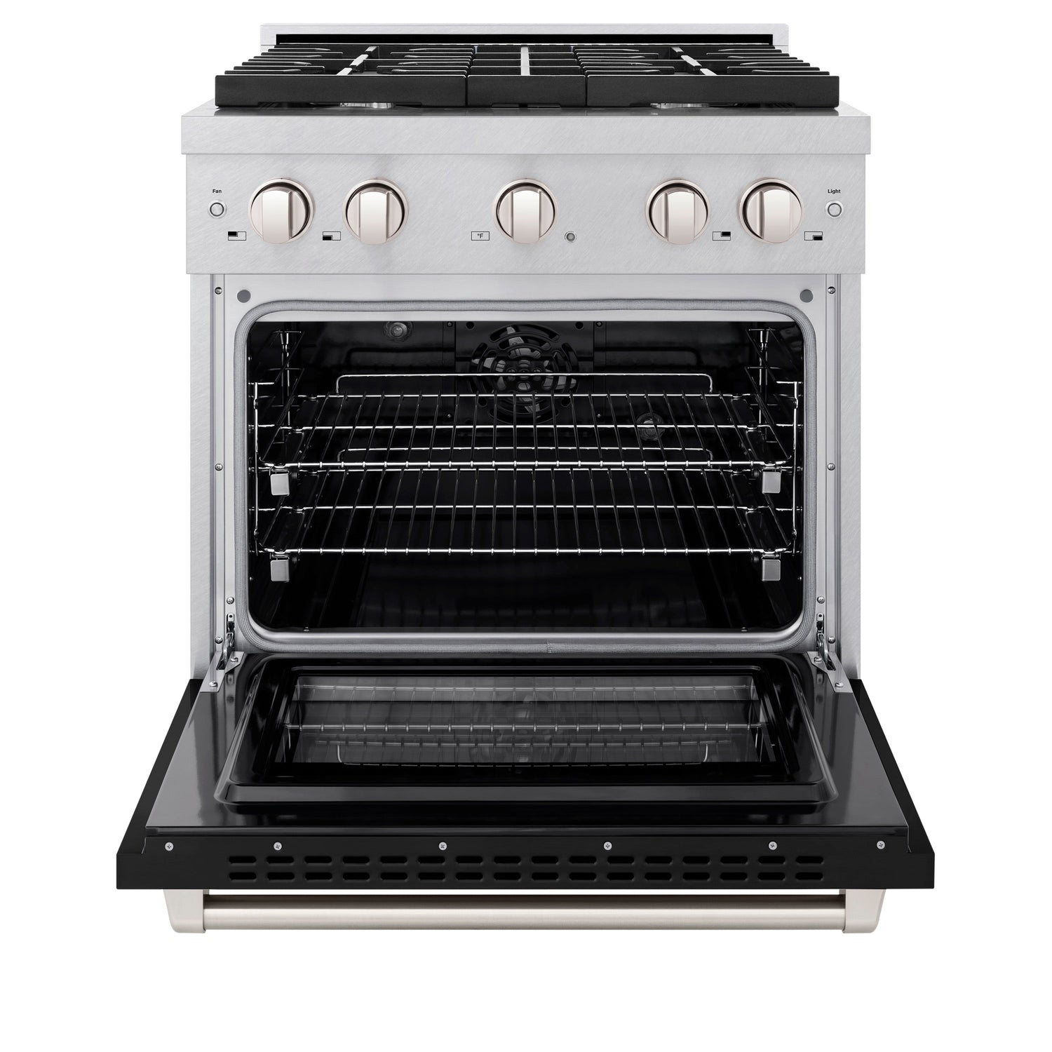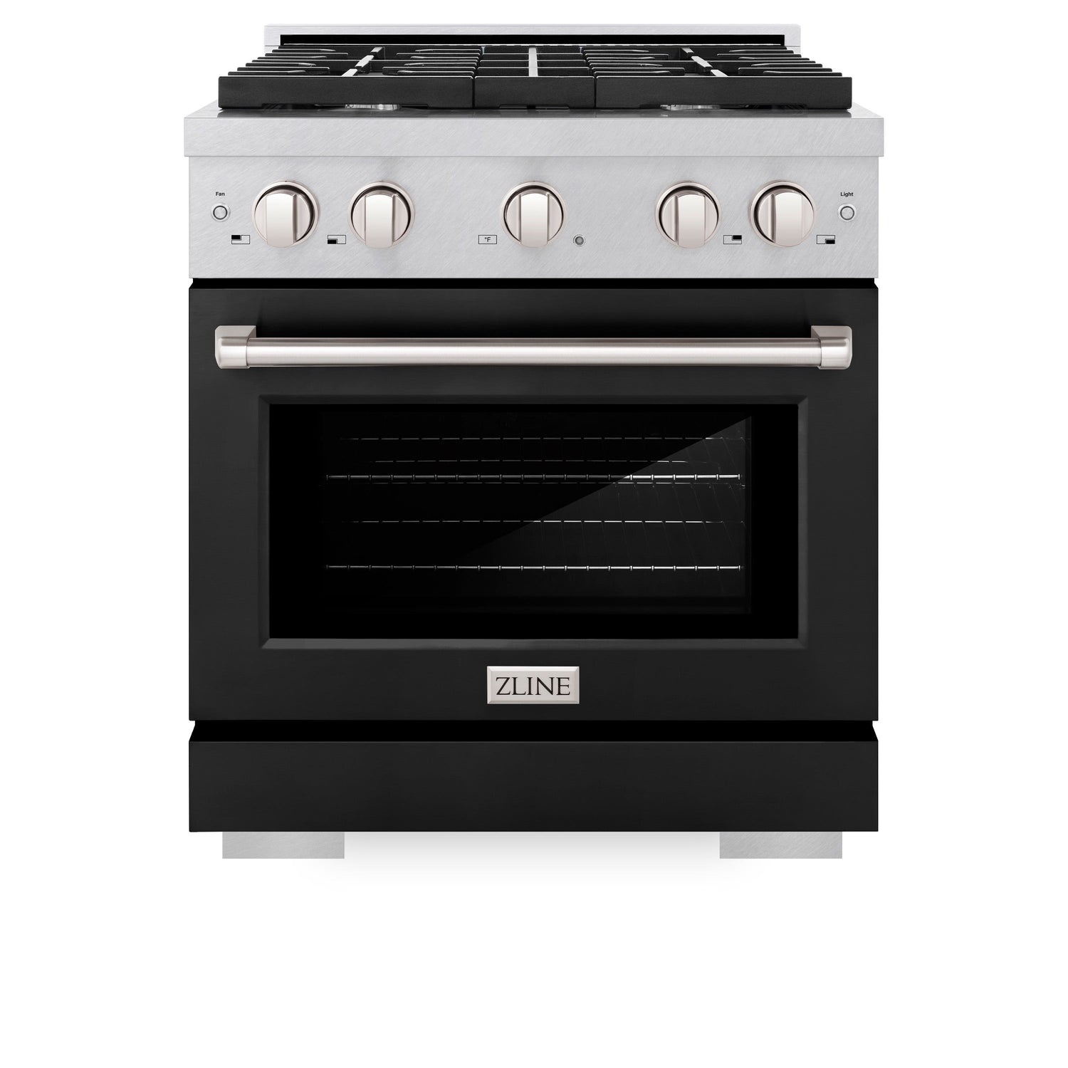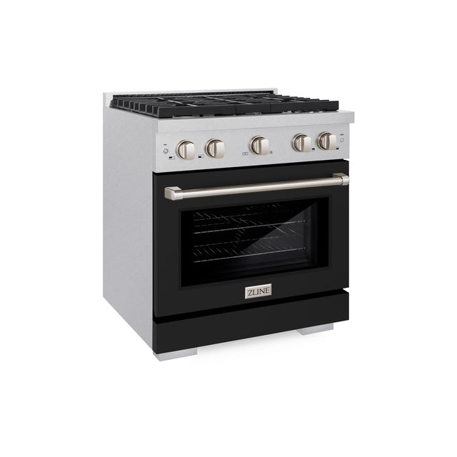 ZLINE 30 in. 4.2 cu. ft. Paramount Dual Fuel Range with 4 Burner Gas Cooktop and Electric Convection Oven in Satin Stainless Steel with Black Matte Door (SDRS-BLM-30)