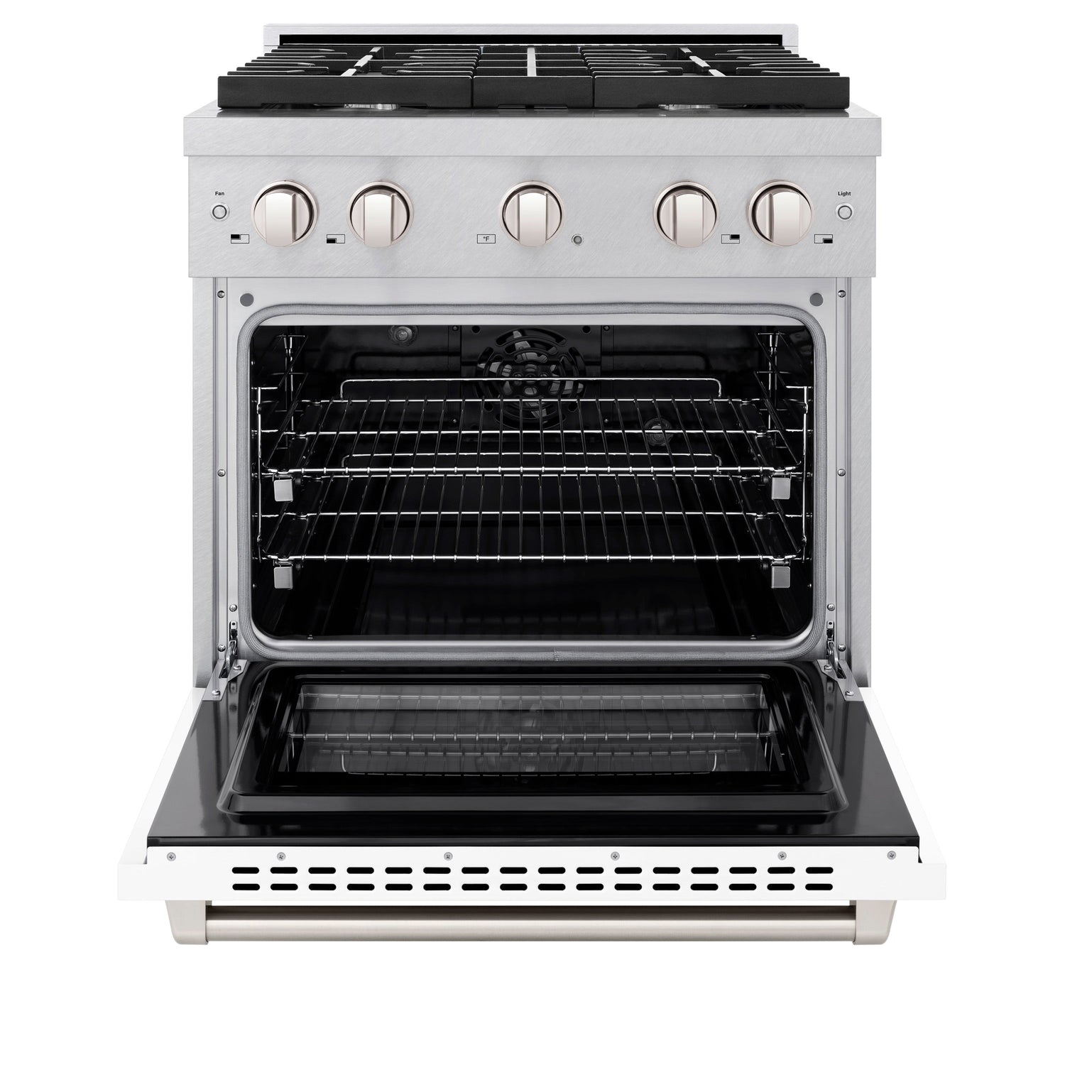 ZLINE 30 in. 4.2 cu. ft. Paramount Dual Fuel Range with 4 Burner Gas Cooktop and Electric Convection Oven in Satin Stainless Steel with White Matte Door (SDRS-WM-30)
