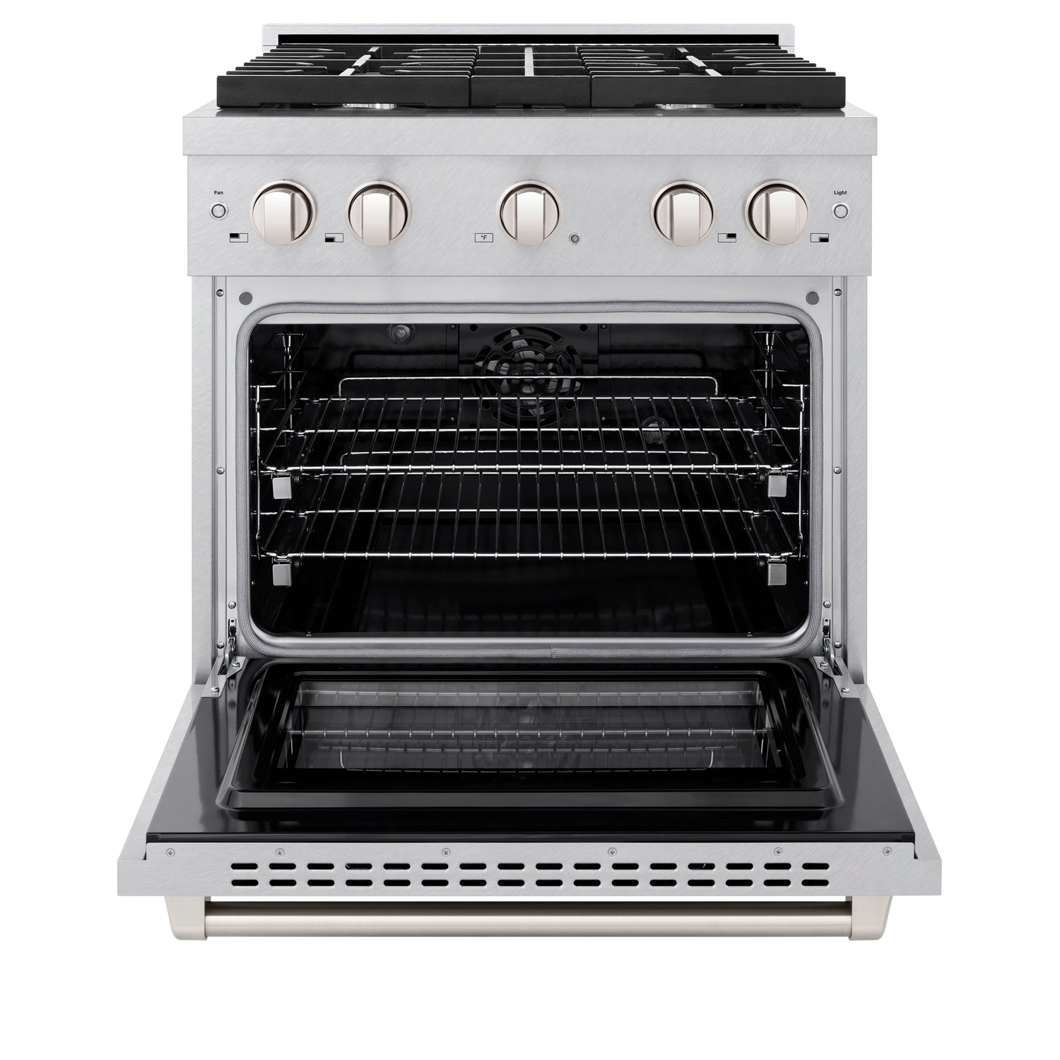 Luxury isn’t meant to be left desired—it’s meant to be attainable. The ZLINE 30 in. 4.2 cu. ft. Paramount Dual Fuel Range with 4 Burner Gas Cooktop and Electric Convection Oven in Satin Stainless Steel (SDRS-30) combines the versatility of a gas cooktop with 4 Italian-made auto-reignition burners, an electric convection oven with digital thermostat technology, enhanced cast iron grates, and a Horizon oven door window design allowing you to master every meal. With a modern, timeless style and refined functionality, ZLINE Paramount Dual Fuel Ranges are masterfully crafted to deliver an elevated culinary experience.