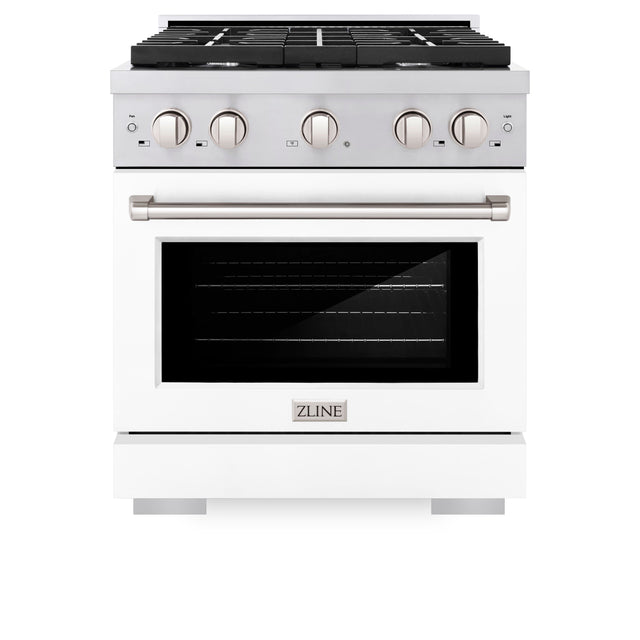 ZLINE 30 in. 4.2 cu. ft. Paramount Gas Range with 4 Burner Cooktop and Convection Gas Oven in Stainless Steel with White Matte Door (SGR-WM-30)