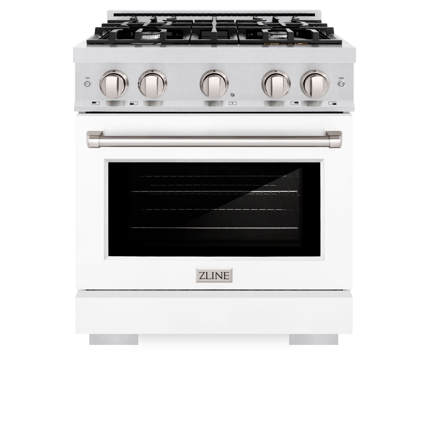 ZLINE 30 in. 4.2 cu. ft. Select Dual Fuel Range with 4 Burner Gas Cooktop and Electric Convection Oven in Satin Stainless Steel with White Matte Door (HDRS-WM-30)