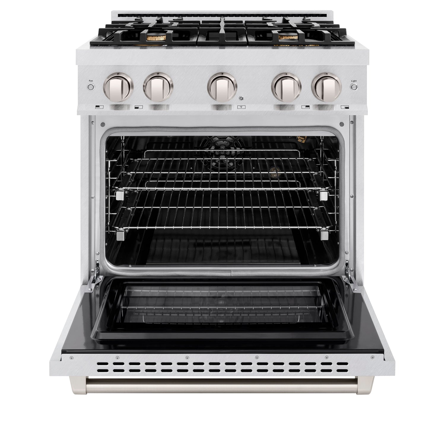 ZLINE 30 in. 4.2 cu. ft. Select Gas Range with Convection Gas Oven in Satin Stainless Steel with 4 Brass Burners (HGRS-BR-30)