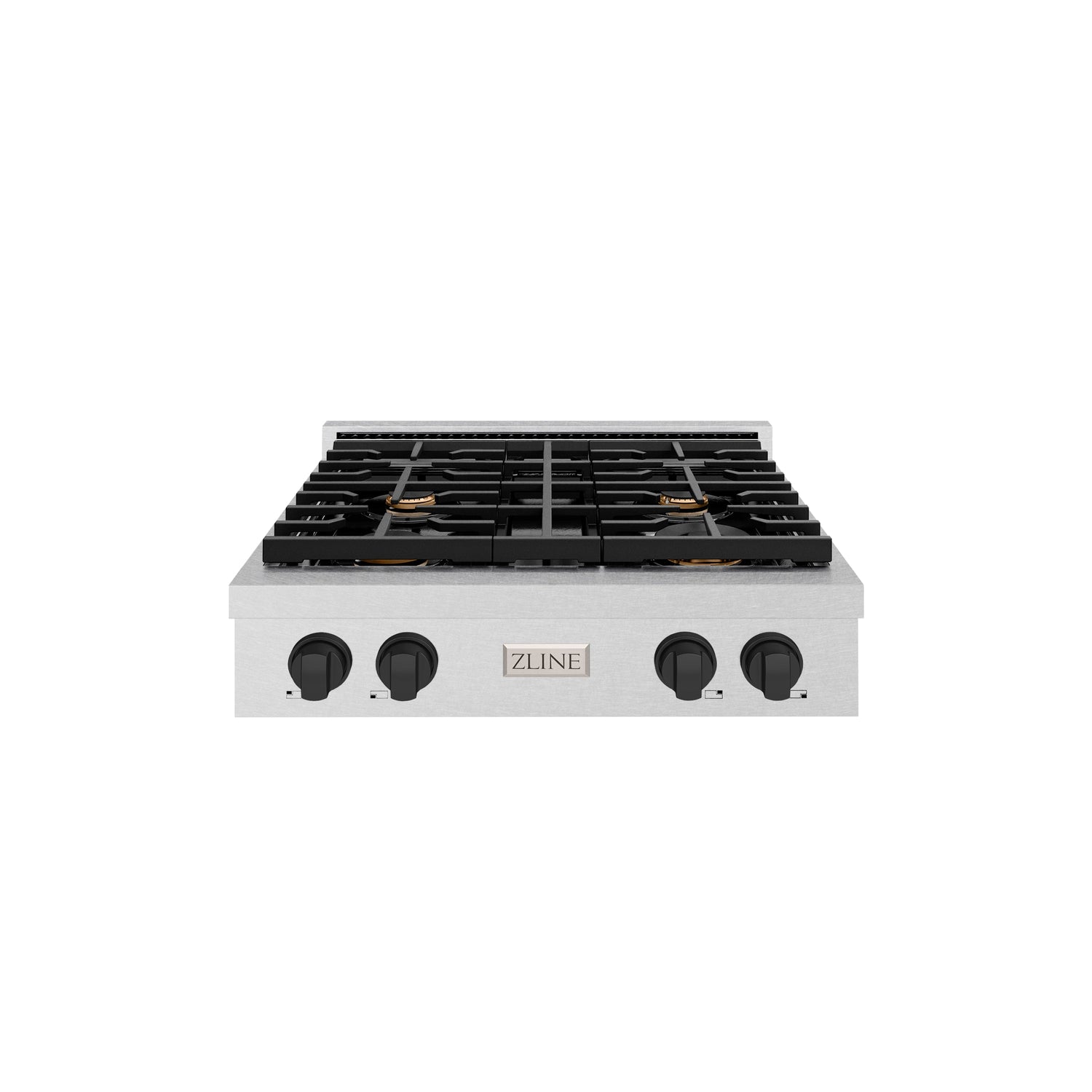 ZLINE 30 in. Autograph Edition Paramount Gas Rangetop with 4 Burners and Porcelain Cooktop in Satin Stainless Steel with Matte Black Accents (SRTSZ-30-MB)