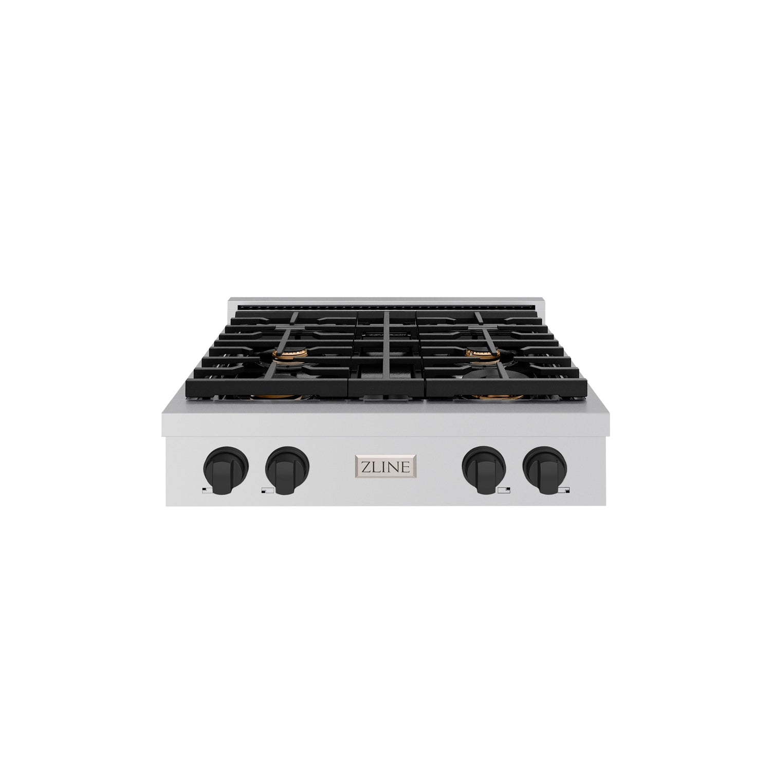 ZLINE 30 in. Autograph Edition Paramount Gas Rangetop with 4 Burners and Porcelain Cooktop in Stainless Steel with Matte Black Accents (SRTZ-30-MB)