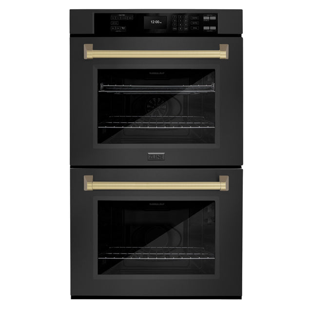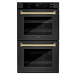 ZLINE 30 in. Autograph Edition Professional True Convection Double Wall Oven with Air Fry and Self Clean in Black Stainless Steel with Champagne Bronze Handles (WADBZ-30-CB)