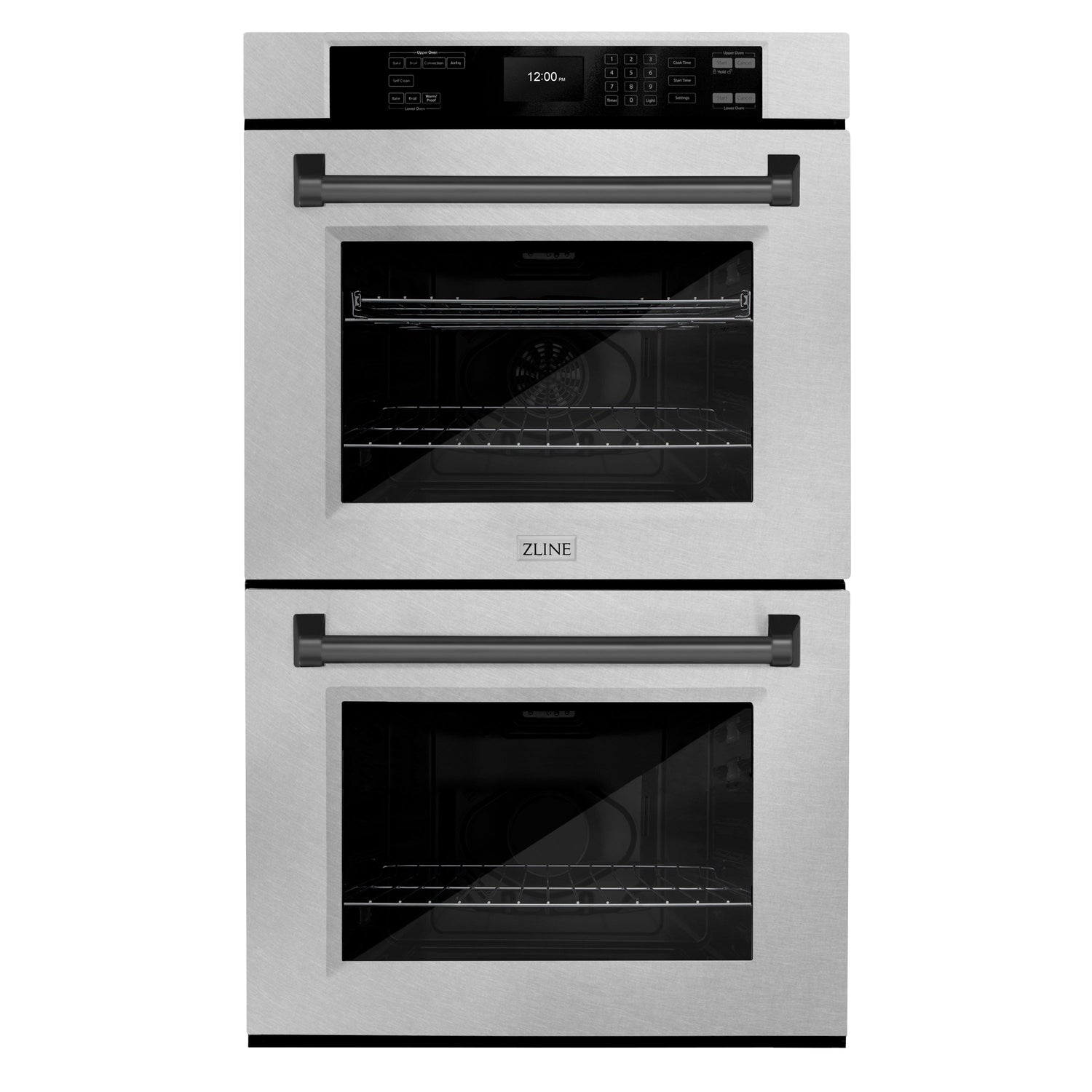ZLINE 30 in. Autograph Edition Professional True Convection Double Wall Oven with Air Fry and Self Clean in Satin Stainless Steel with Matte Black Handles (WADSZ-30-MB)
