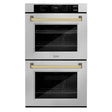 ZLINE 30 in. Autograph Edition Professional True Convection Double Wall Oven with Air Fry and Self Clean in Satin Stainless Steel with Polished Gold Handles (WADSZ-30-G)