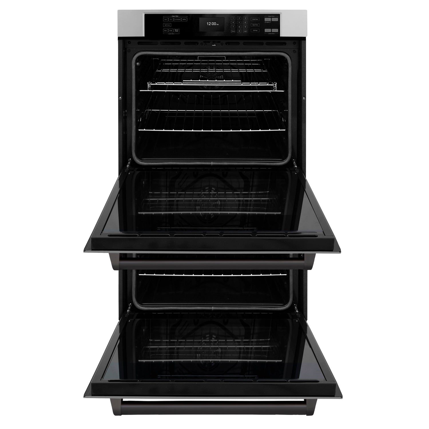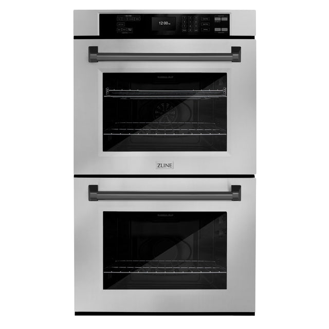 ZLINE 30 in. Autograph Edition Professional True Convection Double Wall Oven with Air Fry and Self Clean in Stainless Steel with Matte Black Handles (WADZ-30-MB)