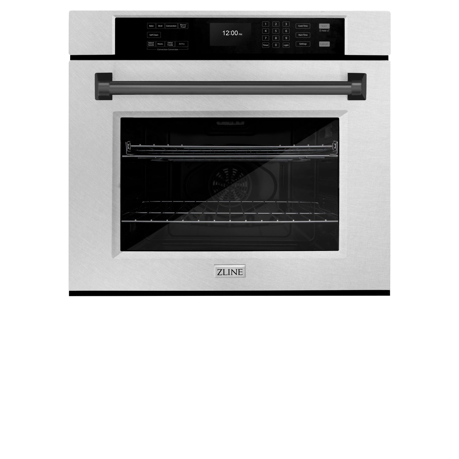 ZLINE 30 in. Autograph Edition Professional True Convection Single Wall Oven with Air Fry and Self Clean in Satin Stainless Steel with Matte Black Handle (WASSZ-30-MB)