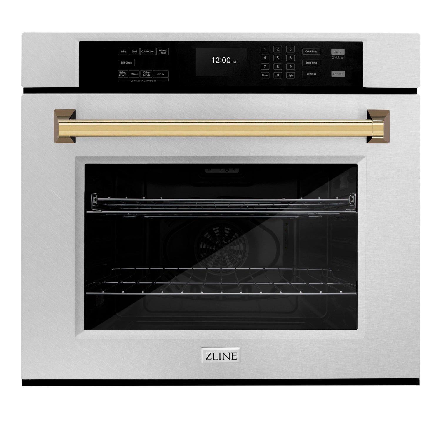 ZLINE 30 in. Autograph Edition Professional True Convection Single Wall Oven with Air Fry and Self Clean in Satin Stainless Steel with Polished Gold Handle (WASSZ-30-G)