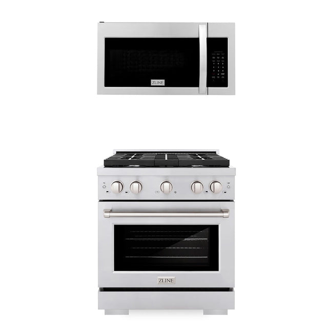 ZLINE 30 in. Kitchen Package Stainless Steel Gas Range and Over The Range Microwave with Modern Handle