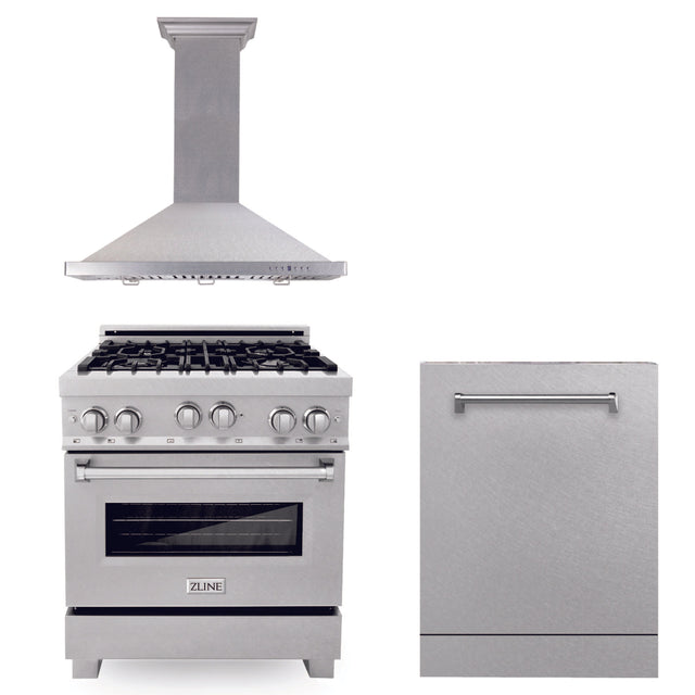 ZLINE 30 in. Kitchen Package with Stainless Steel Gas Range, Convertible Vent Range Hood and Dishwasher (3KP-RGRH30-DW)