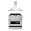 ZLINE 30 in. Kitchen Package with Stainless Steel Gas Range with DuraSnow Door and Convertible Vent Range Hood (2KP-RGSNRH30)