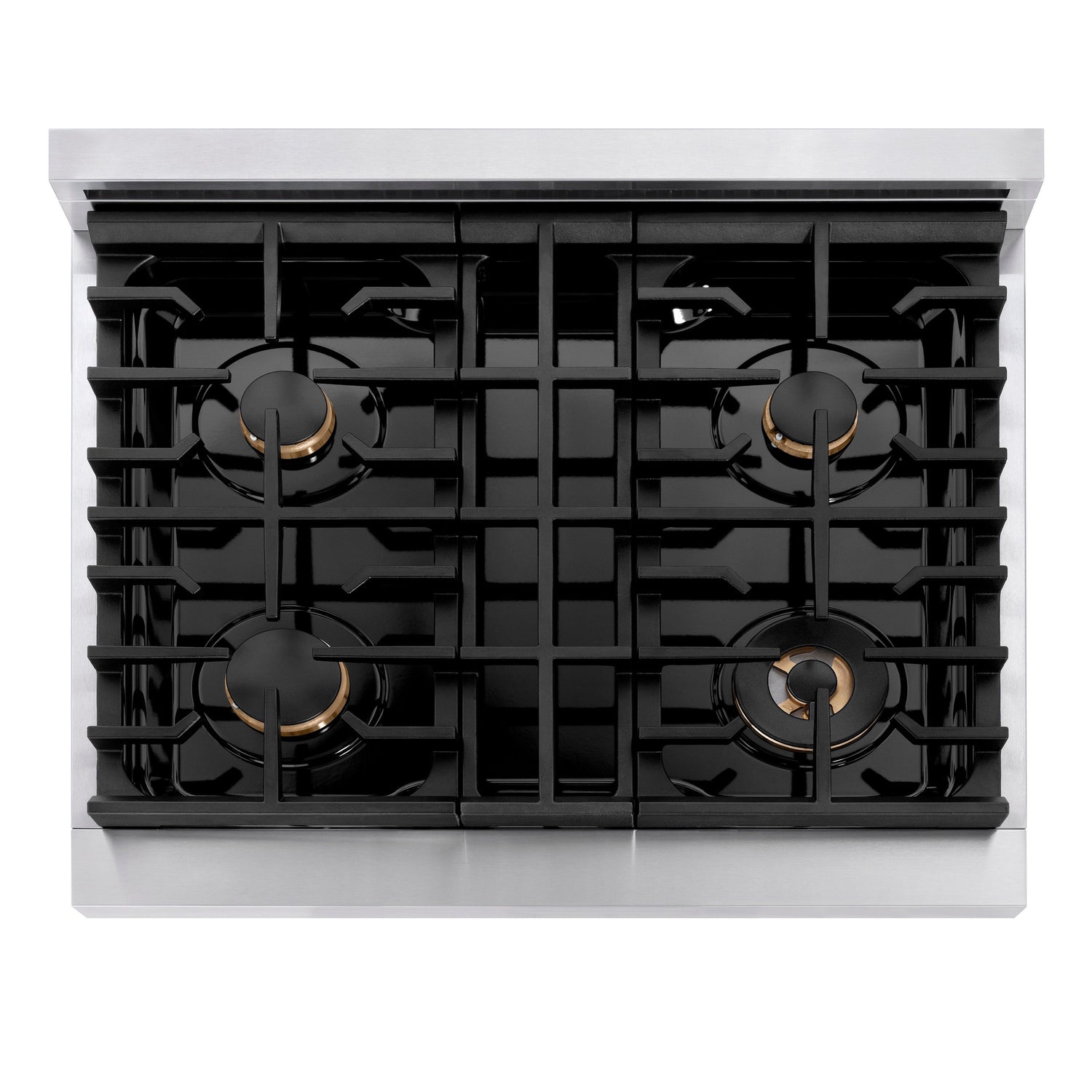 ZLINE 30 in. Paramount Gas Rangetop with 4 Brass Burners and Porcelain Cooktop in Stainless Steel (SRT-BR-30)