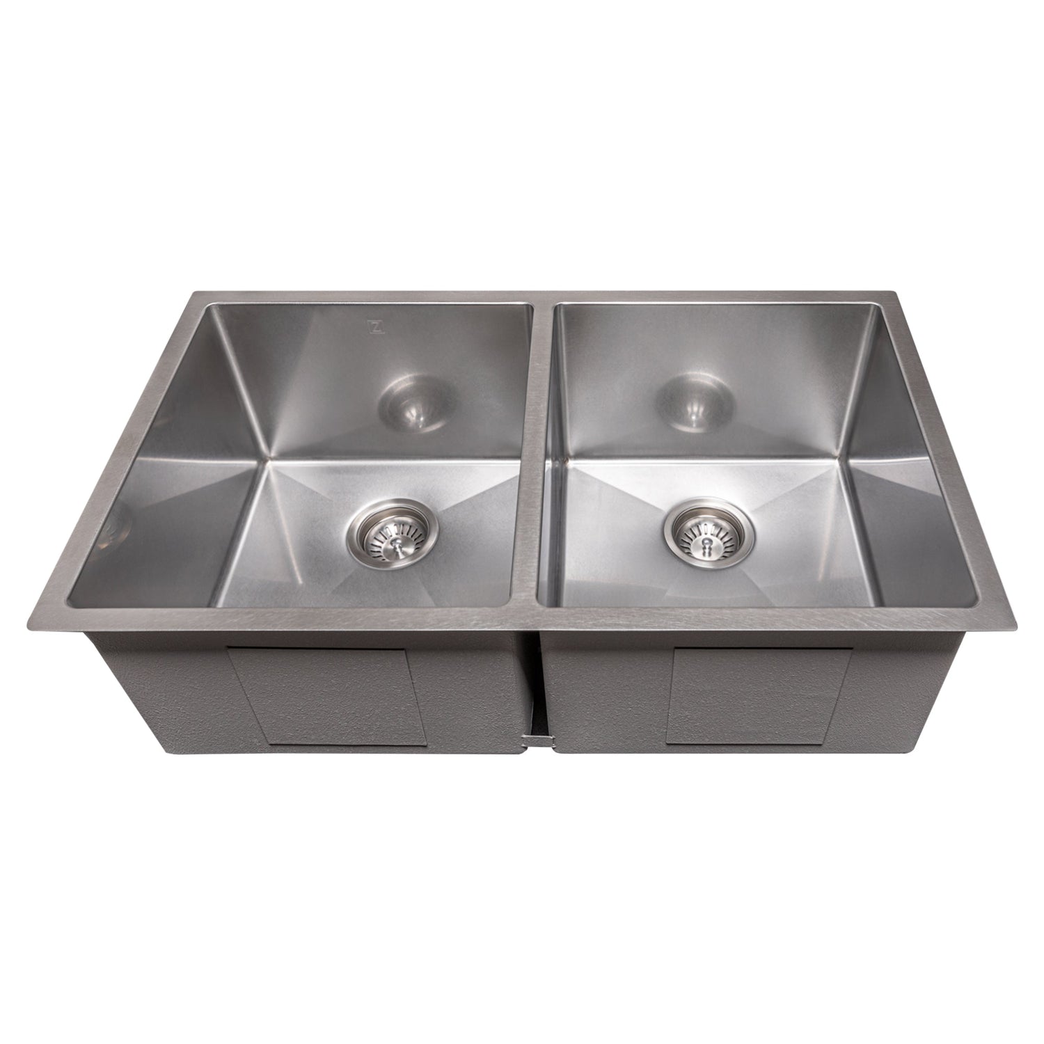 ZLINE 33 in. Anton Undermount Double Bowl Satin Stainless Steel Kitchen Sink with Bottom Grid (SR50D-33S)