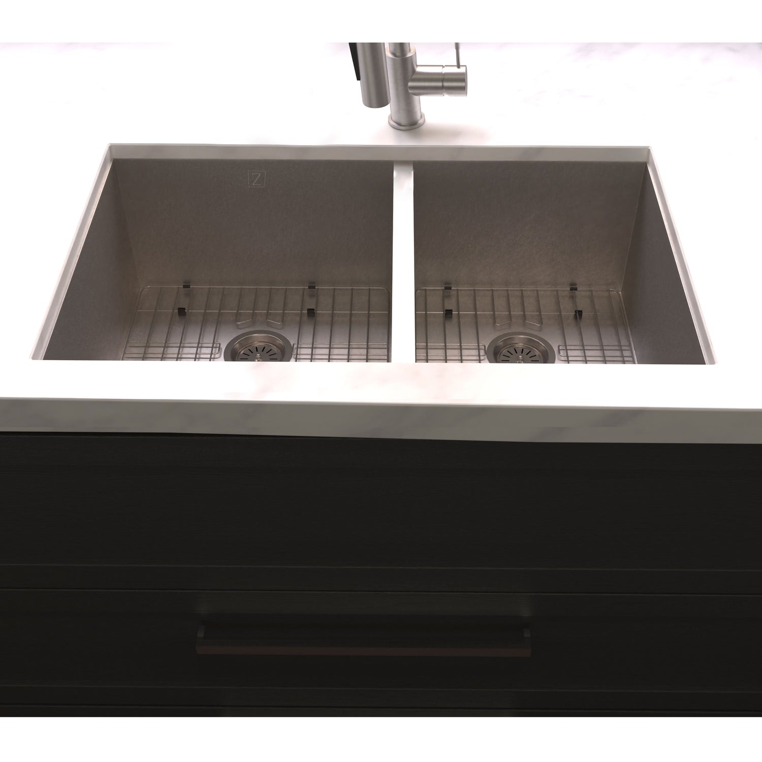 ZLINE 33 in. Chamonix Undermount Double Bowl Satin Stainless Steel Kitchen Sink with Bottom Grid (SR60D-33S)