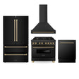 Shop Attainable Luxury with the ZLINE Kitchen and Bath Kitchen Appliance Package - featuring ZLINE Autograph Edition 36" 6.0 cu. ft. Dual Fuel Range with Gas Stove and Electric Oven in Black Stainless Steel with Champagne Bronze Accents (RABZ-36-CB), 36" Black Stainless Steel Range Hood with Champagne Bronze Accent Handle (BS655Z-36-CB), 24" 3rd Rack Top Control Tall Tub Dishwasher in Black Stainless Steel with Champagne Bronze Accent Handle, 51dBa (DWVZ-BS-24-CB) and 36" 22.5 cu. ft Freestanding French Door Refrigerator with Ice Maker in Fingerprint Resistant Black Stainless Steel with Accents (RFMZ-36-BS-CB). Save more on your dream kitchen when you bundle. Free shipping on all orders.