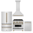 ZLINE 36" Autograph Edition Kitchen Package with Stainless Steel Dual Fuel Range, Range Hood, Dishwasher and Refrigeration with Champagne Bronze Accents (4KAPR-RARHDWM36-CB)