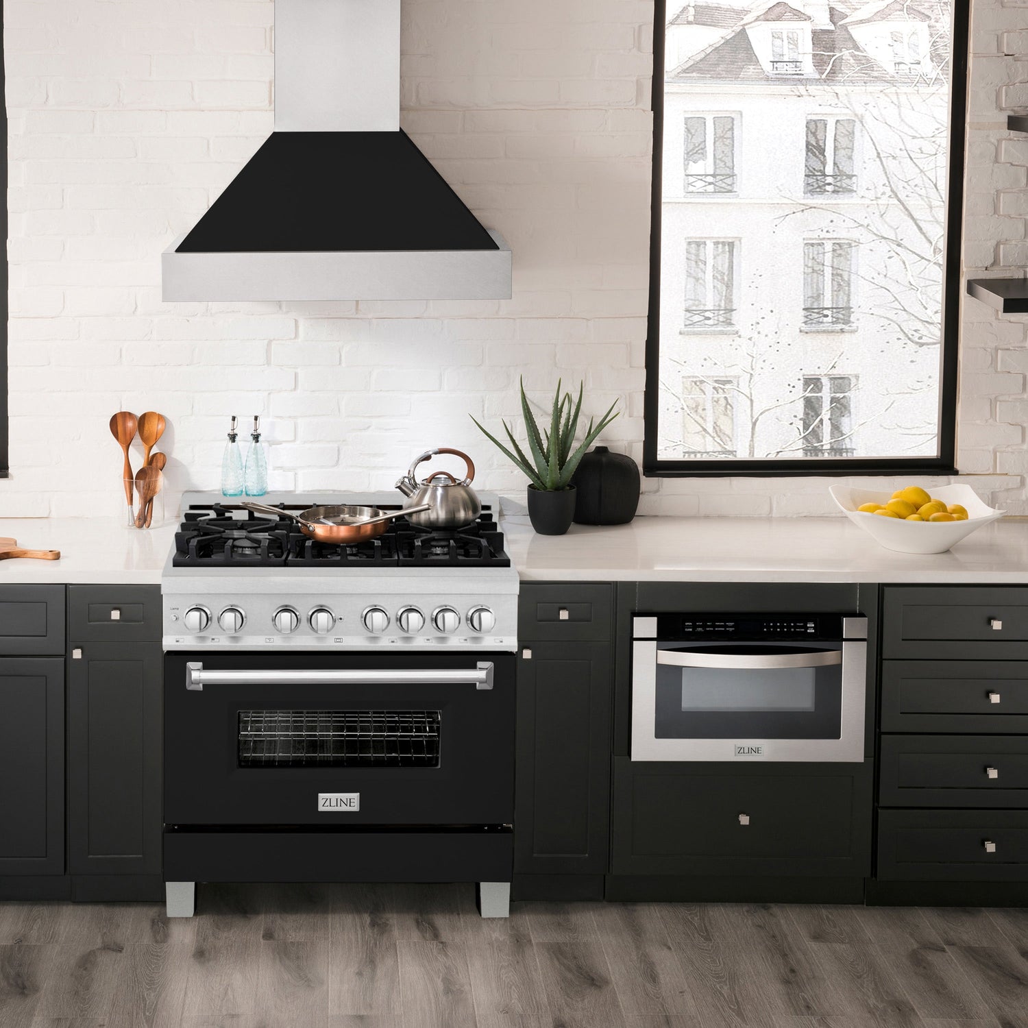 ZLINE 36 in. 4.6 cu. ft. Legacy Dual Fuel Range with 6 Burner Gas Cooktop and Electric Convection Oven in Satin Stainless Steel and Black Matte Door (RAS-BLM-36)
