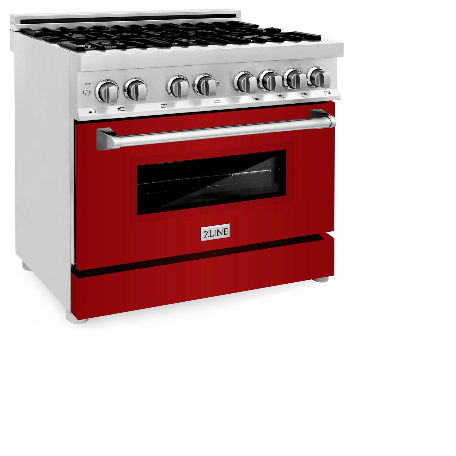 ZLINE 36 in. 4.6 cu. ft. Legacy Dual Fuel Range with 6 Burner Gas Cooktop and Electric Convection Oven in Stainless Steel and Red Gloss Door (RA-RG-36)