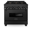 ZLINE 36 in. 4.6 cu. ft. Legacy Dual Fuel Range with Gas Cooktop and Electric Convection Oven in Black Stainless Steel with 6 Brass Burners (RAB-BR-36)
