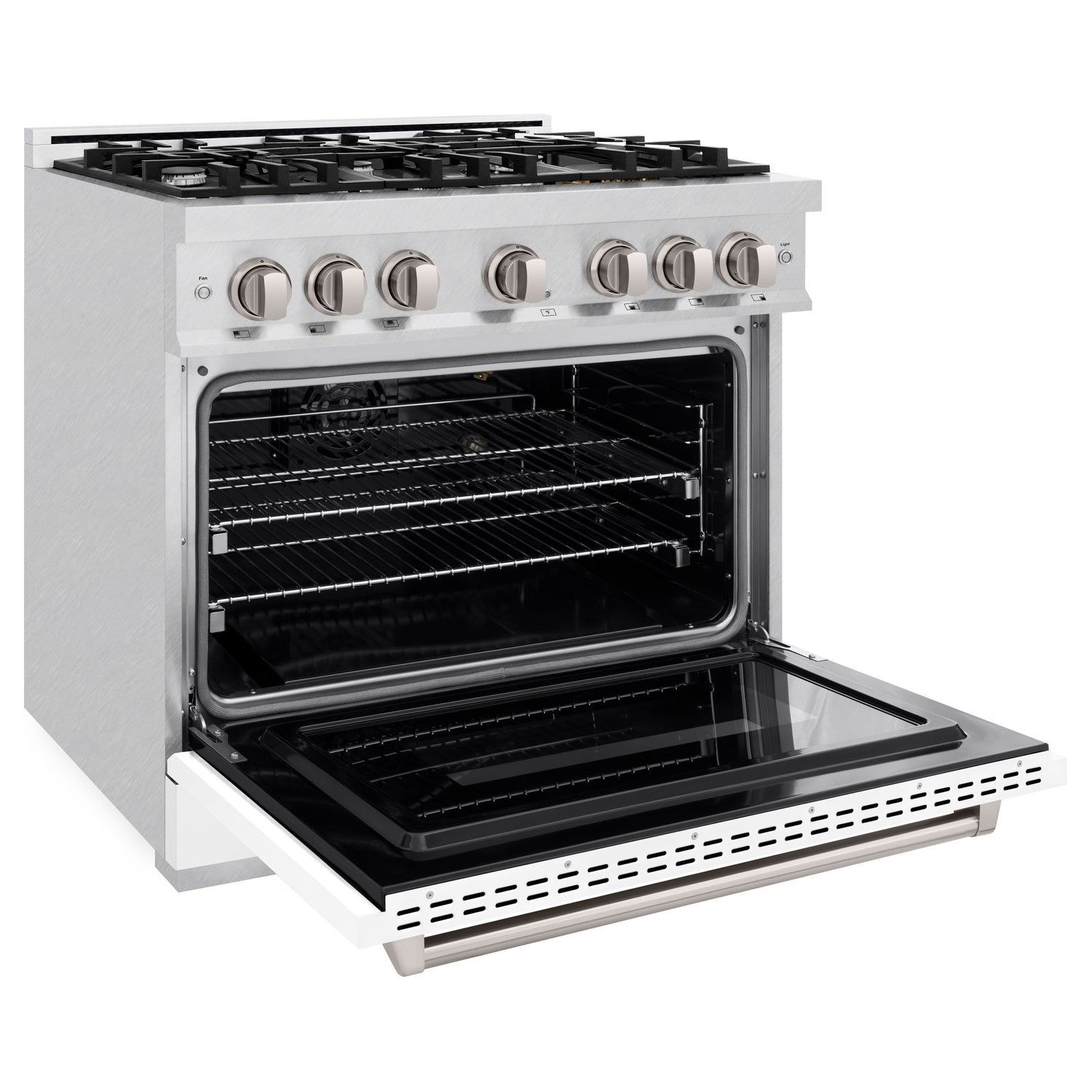 ZLINE 36 in. 5.2 cu. ft. Classic Gas Range with 6 Burner Cooktop and Convection Gas Oven in Satin Stainless Steel with White Matte Door (CGRS-WM-36)