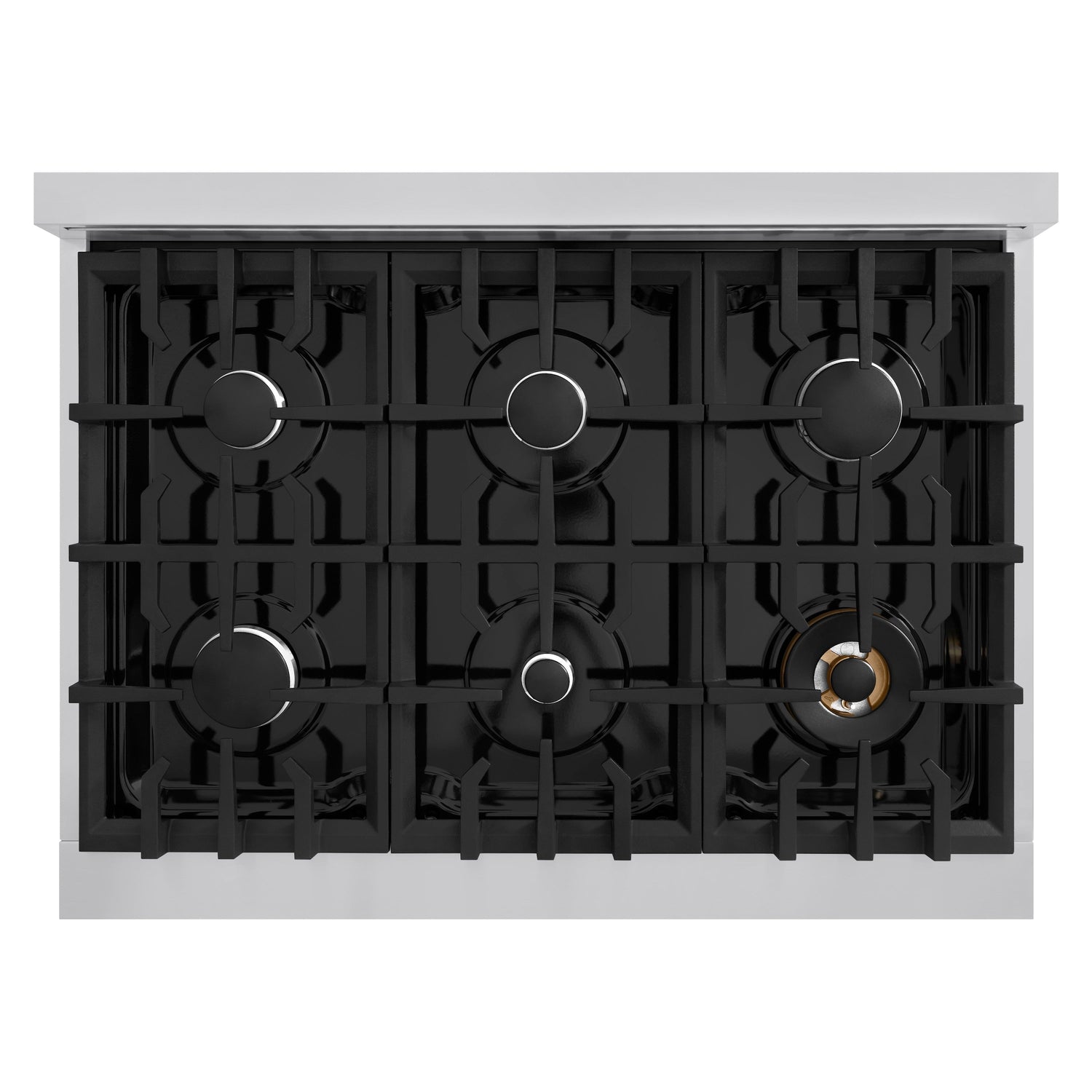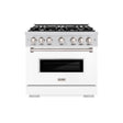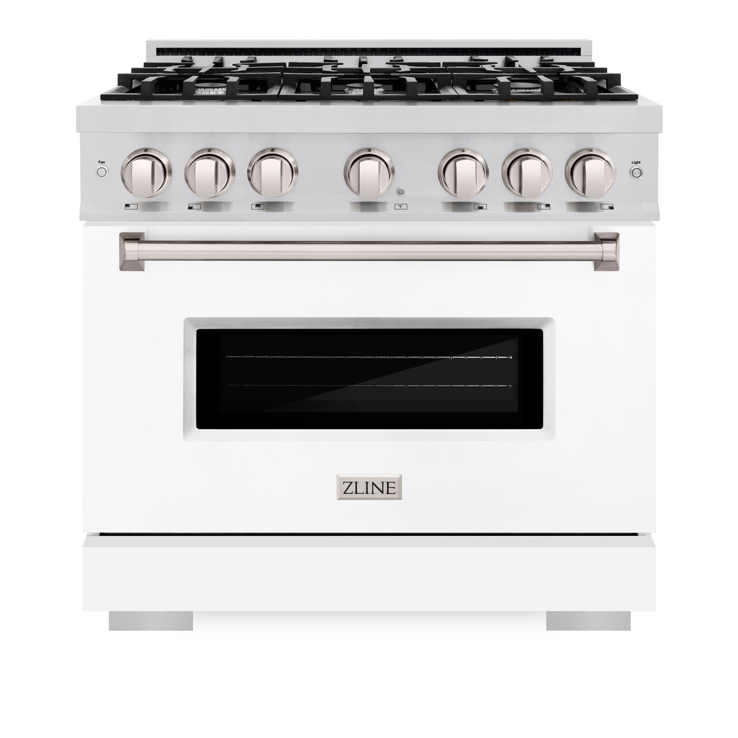 ZLINE 36 in. 5.2 cu. ft. Classic Gas Range with 6 Burner Cooktop and Convection Gas Oven in Stainless Steel with White Matte Door (CGR-WM-36)