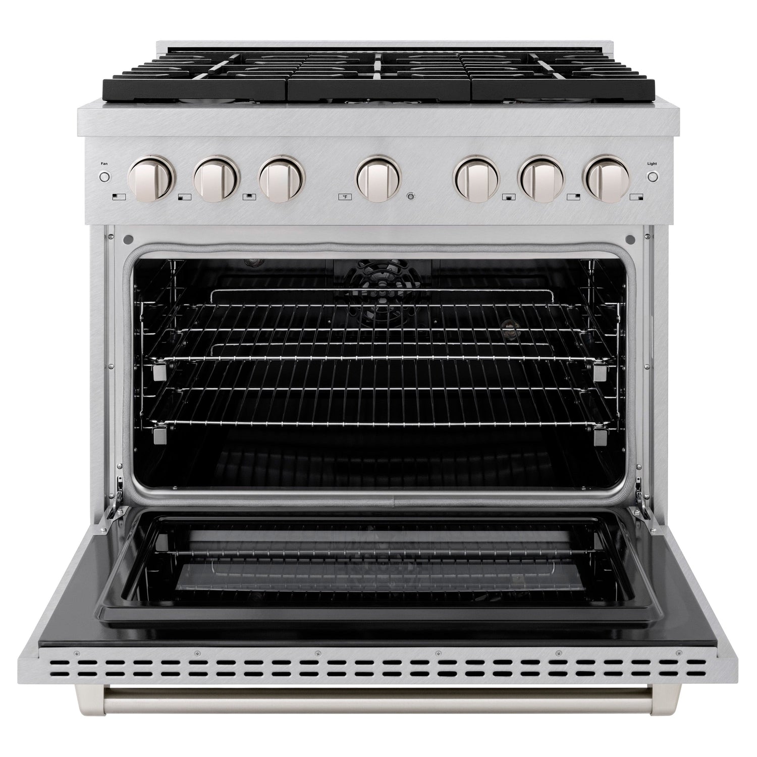ZLINE 36 in. 5.2 cu. ft. Paramount Dual Fuel Range with 6 Burner Gas Cooktop and Electric Convection Oven in Satin Stainless Steel (SDRS-36)