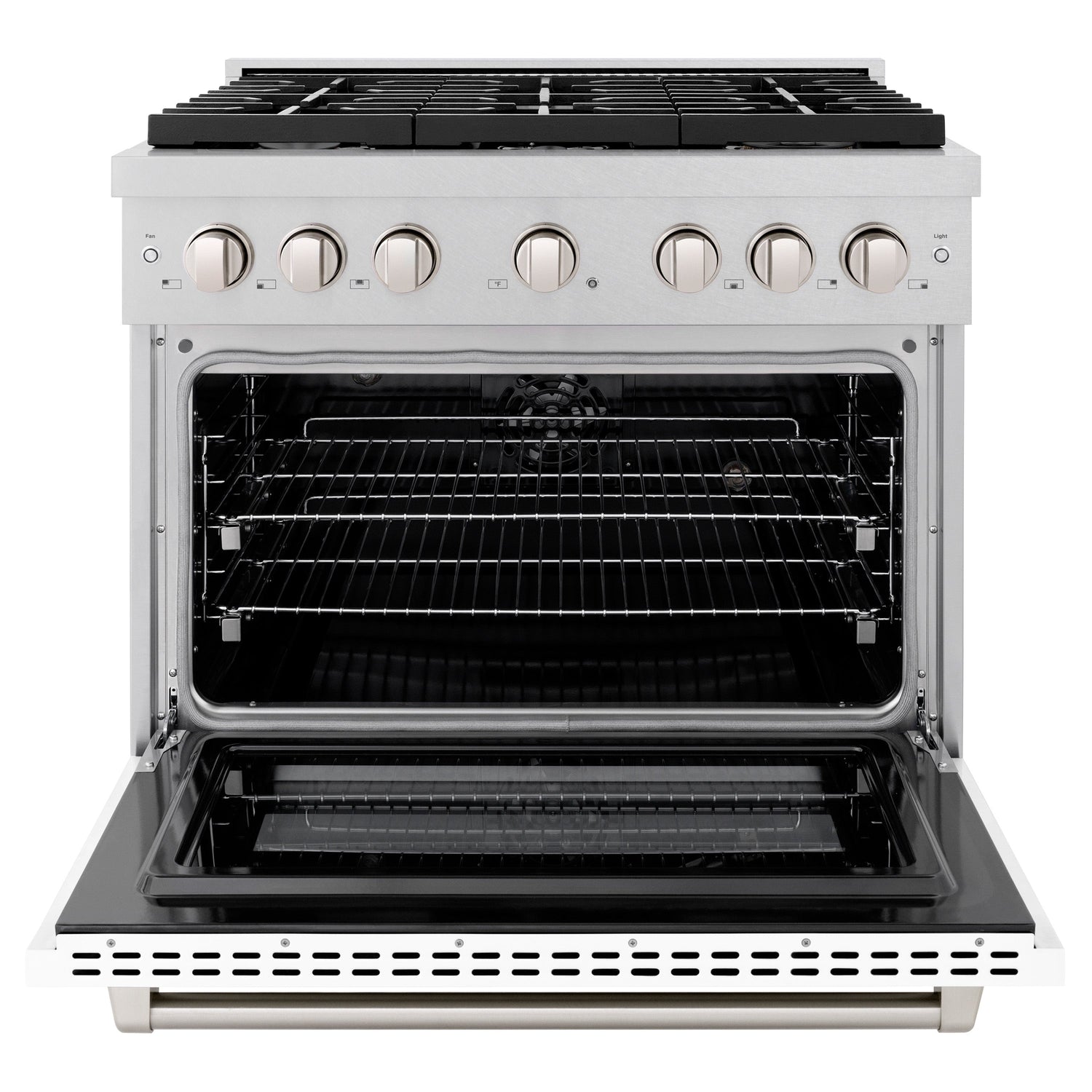 ZLINE 36 in. 5.2 cu. ft. Paramount Dual Fuel Range with 6 Burner Gas Cooktop and Electric Convection Oven in Satin Stainless Steel with White Matte Door (SDRS-WM-36)