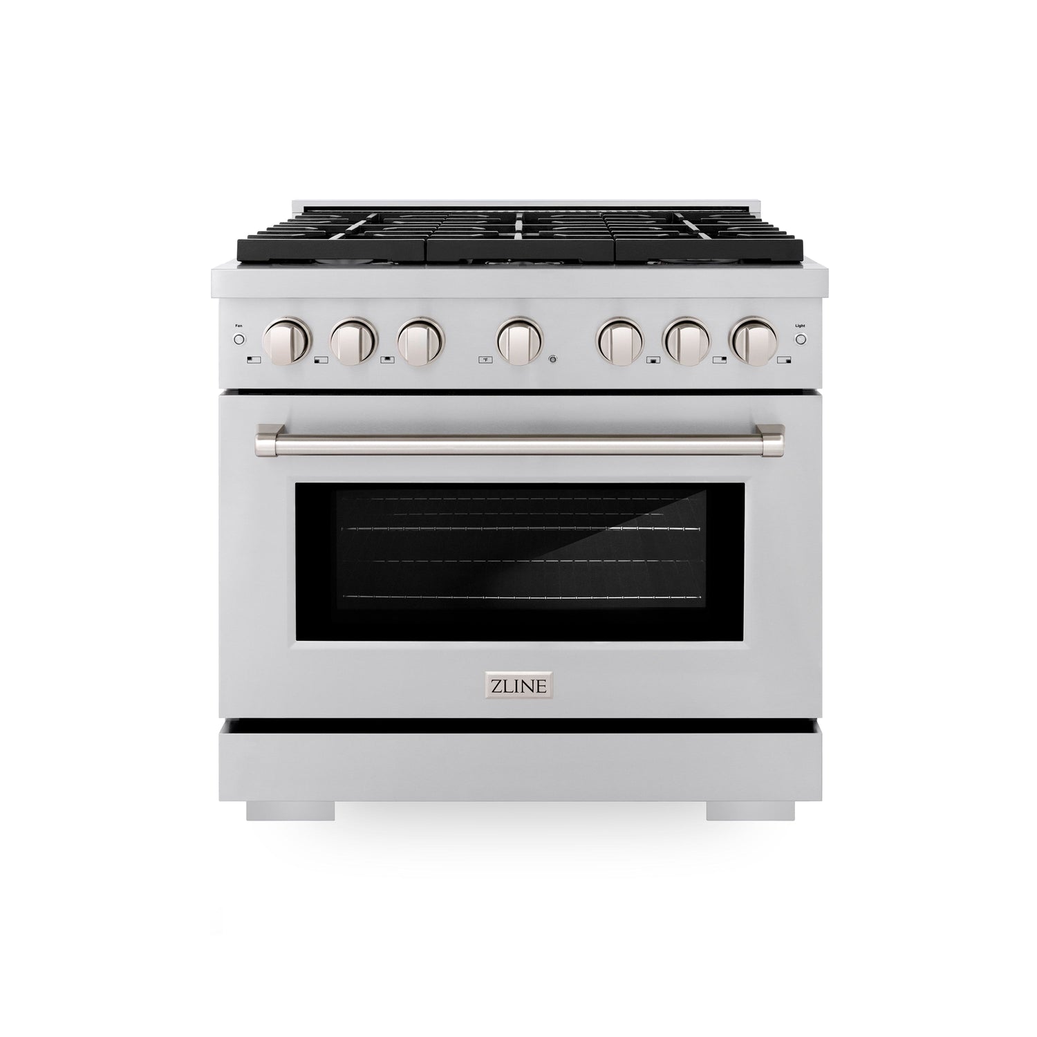 ZLINE 36 in. 5.2 cu. ft. Paramount Dual Fuel Range with Gas Cooktop and Electric Convection Oven in Stainless Steel with 6 Brass Burners (SDR-BR-36)