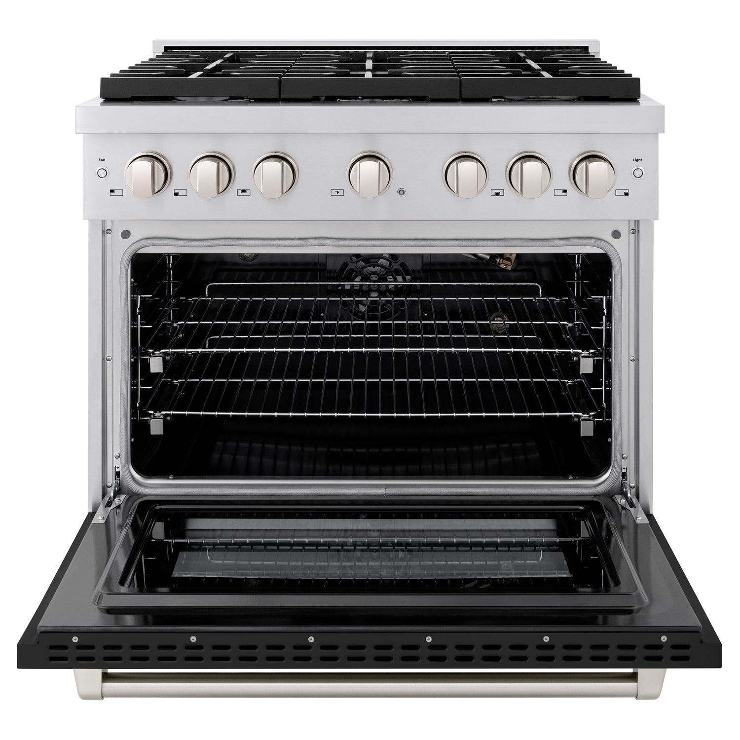 ZLINE 36 in. 5.2 cu. ft. Paramount Gas Range with 6 Burner Cooktop and Convection Gas Oven in Stainless Steel with Black Matte Door (SGR-BLM-36)