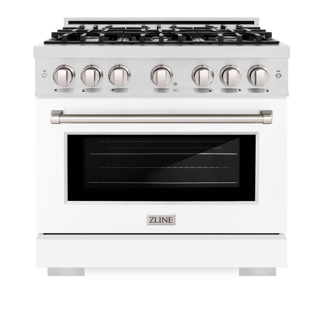 ZLINE 36 in. 5.2 cu. ft. Select Dual Fuel Range with 6 Burner Gas Cooktop and Electric Convection Oven in Satin Stainless Steel with White Matte Door (HDRS-WM-36)