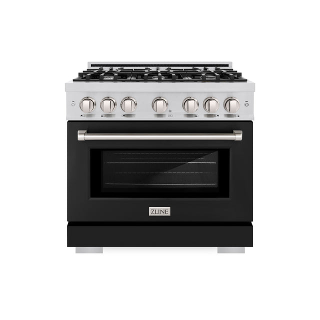 ZLINE 36 in. 5.2 cu. ft. Select Dual Fuel Range with 6 Burner Gas Cooktop and Electric Convection Oven in Stainless Steel with Black Matte Door (HDR-BLM-36)