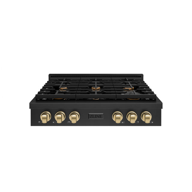 ZLINE 36 in. Autograph Edition Paramount Gas Rangetop with 6 Burners and Porcelain Cooktop in Black Stainless Steel with Champagne Bronze Accents (SRTBZ-36-CB)