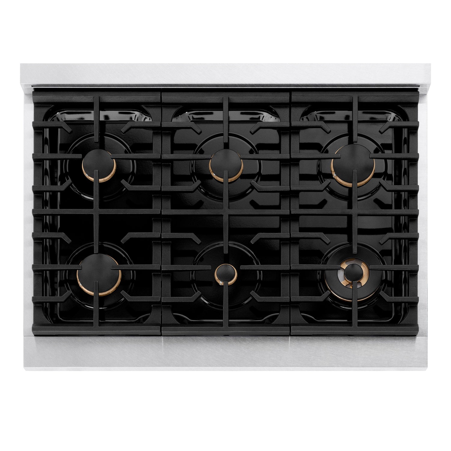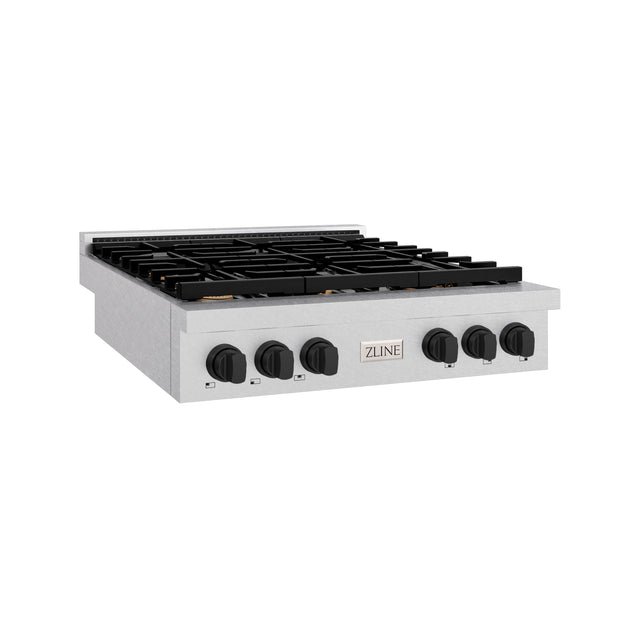 ZLINE 36 in. Autograph Edition Paramount Gas Rangetop with 6 Burners and Porcelain Cooktop in Satin Stainless Steel with Matte Black Accents (SRTSZ-36-MB)
