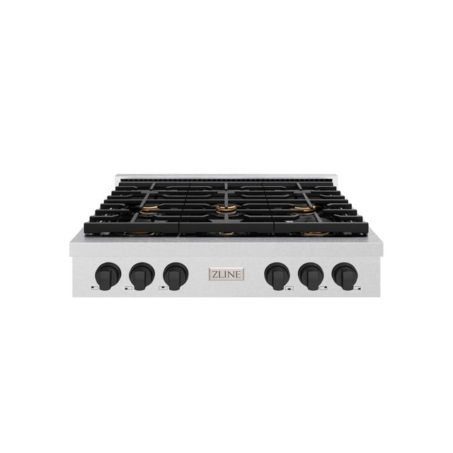 ZLINE 36 in. Autograph Edition Paramount Gas Rangetop with 6 Burners and Porcelain Cooktop in Satin Stainless Steel with Matte Black Accents (SRTSZ-36-MB)