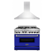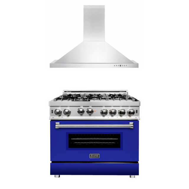 ZLINE 36 in. Kitchen Package with Stainless Steel Gas Range with Blue Matte Door and Convertible Vent Range Hood (2KP-RGBMRH36)