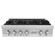 ZLINE 36 in. Legacy Gas Rangetop with 6 Brass Burners and Porcelain Cooktop in Satin Stainless Steel with Griddle (RTS-BR-GR-36)