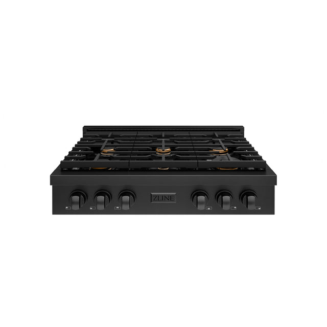 ZLINE 36 in. Paramount Gas Rangetop with 6 Brass Burners and Porcelain Cooktop in Black Stainless Steel (SRTB-BR-36)