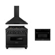 ZLINE 36" Kitchen Package with Black Stainless Steel Dual Fuel Range, Convertible Vent Range Hood and 24" Microwave Oven (3KP-RABRHMWO-36)