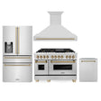 ZLINE 48" Autograph Edition Kitchen Package with Stainless Steel Dual Fuel Range, Range Hood, Dishwasher and Refrigeration with Champagne Bronze Accents (4AKPR-RARHDWM48-CB)