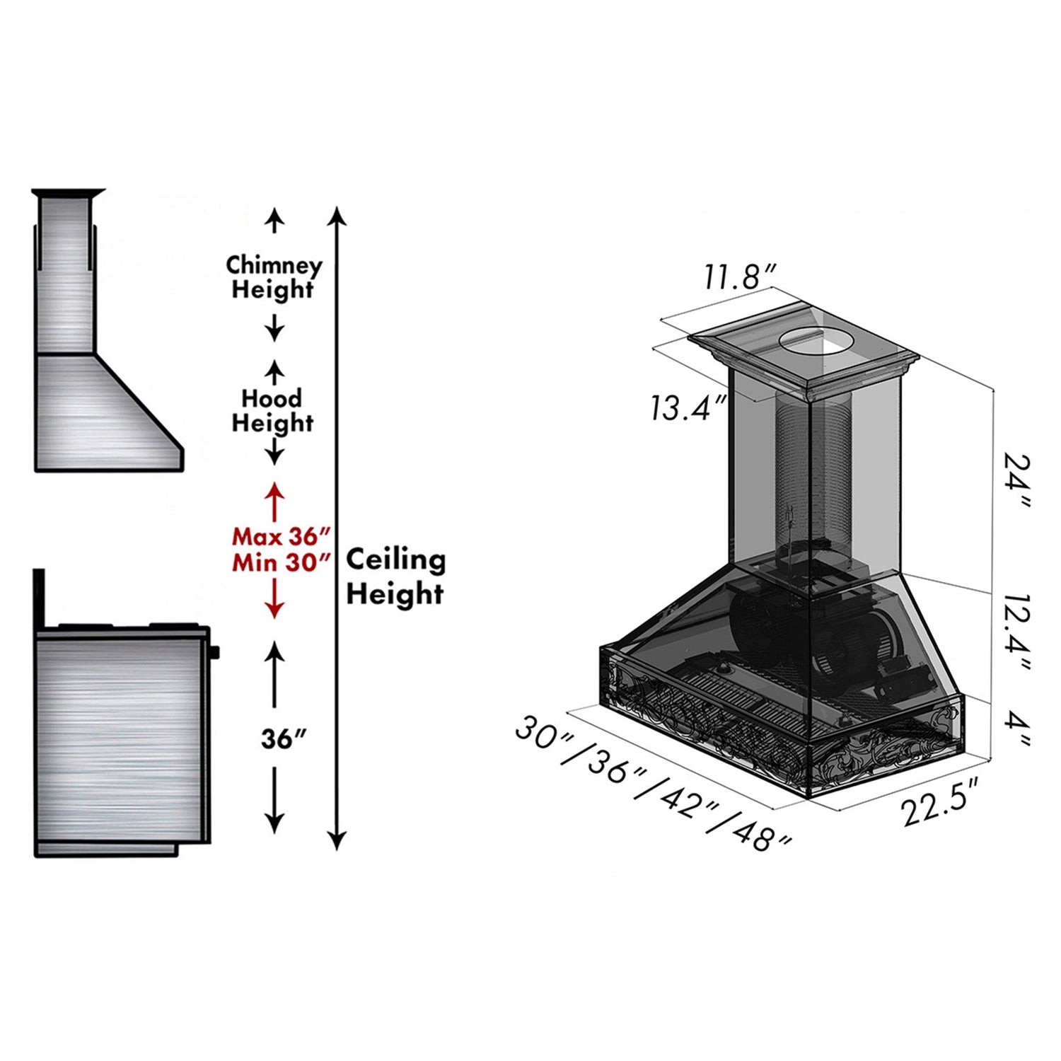 The ZLINE 373RR-48 is a 48 in. 700 CFM Designer Series Wooden Wall Mount Range Hood with a modern design with a built-to-last quality that would make it a great addition to any home or kitchen remodel. The hand-finished wood with walnut inset floral paneling and a walnut base, is made from solid pine with a stainless-steel inner frame. This ducted range hood comes with a high-performance, 700 CFM, 4-speed motor (280/460/670/700 CFM) that will provide all the power you need to quietly and efficiently ventilate your stove while cooking. Modern features, including built-in LED lighting and dishwasher-safe stainless steel baffle filters for easy clean-up, will make using this vent hood a simple, enjoyable experience for years to come. ZLINE Range Hoods are ETL Listed and have one of the easiest installations in the industry. The 3373RR-48 includes a 24 in. chimney with elegant crown molding for ceilings up to 9.5 ft. (must be custom cut to appropriate height) and a 61 in. Chimney Extension (not included) is available for ceilings up to 12.5 ft. ZLINE stands by all products with its Manufacturer Parts Warranty. The 373RR-48 ducted range hood ships next day when in stock.